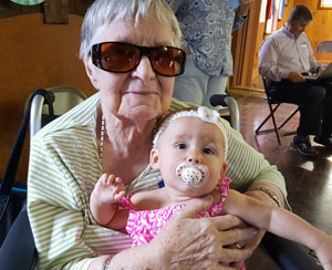 The group traditionally recognizes the oldest and youngest attendees at each gathering. Those recognized this year were June Norris, holding Renaley Dayle Harmon.